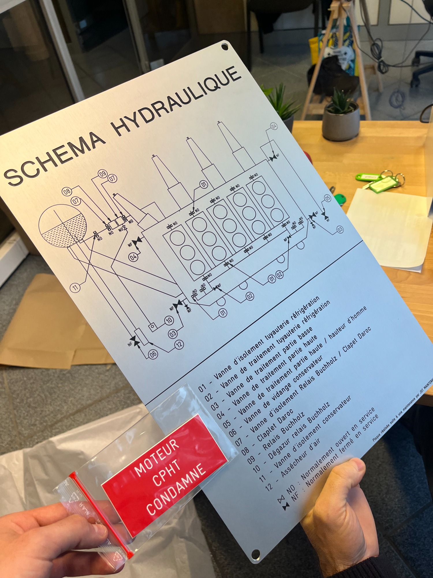 Gravure laser de plaques signalétiques pour un schémas hydraulique d'un transformateur haute tension
